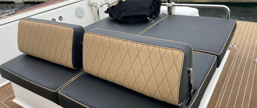 The Fjord 36 yacht stands out because of its sleek design and spacious layout. Unlike traditional boats, this yacht offers an open concept deck with comfortable cushions and shaded seating areas.